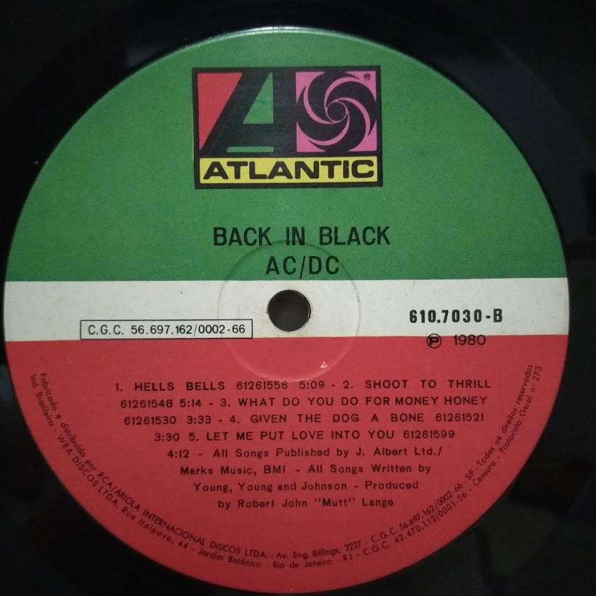 Back In Black (RCA/BMG Ariola) Creditos em 2 Linhas medias